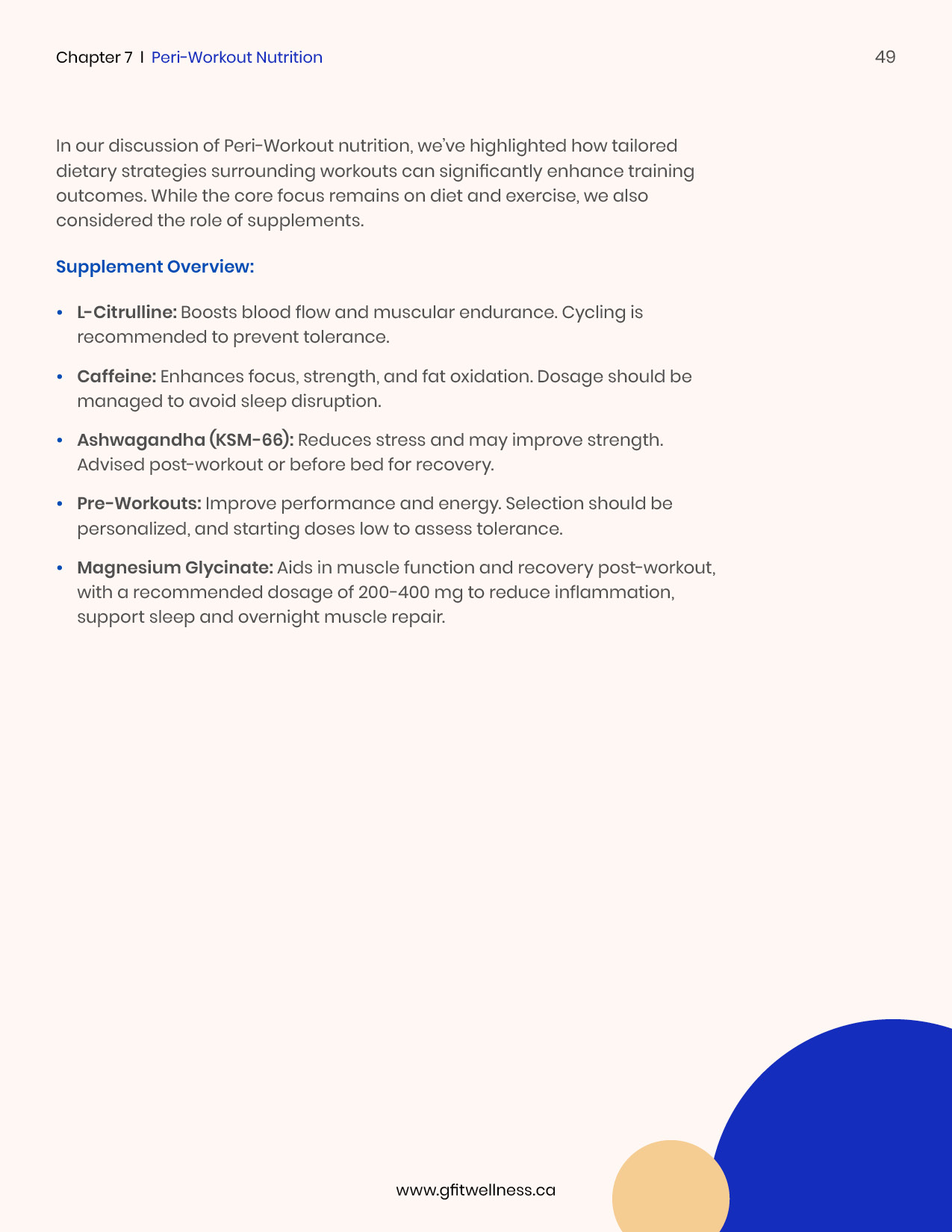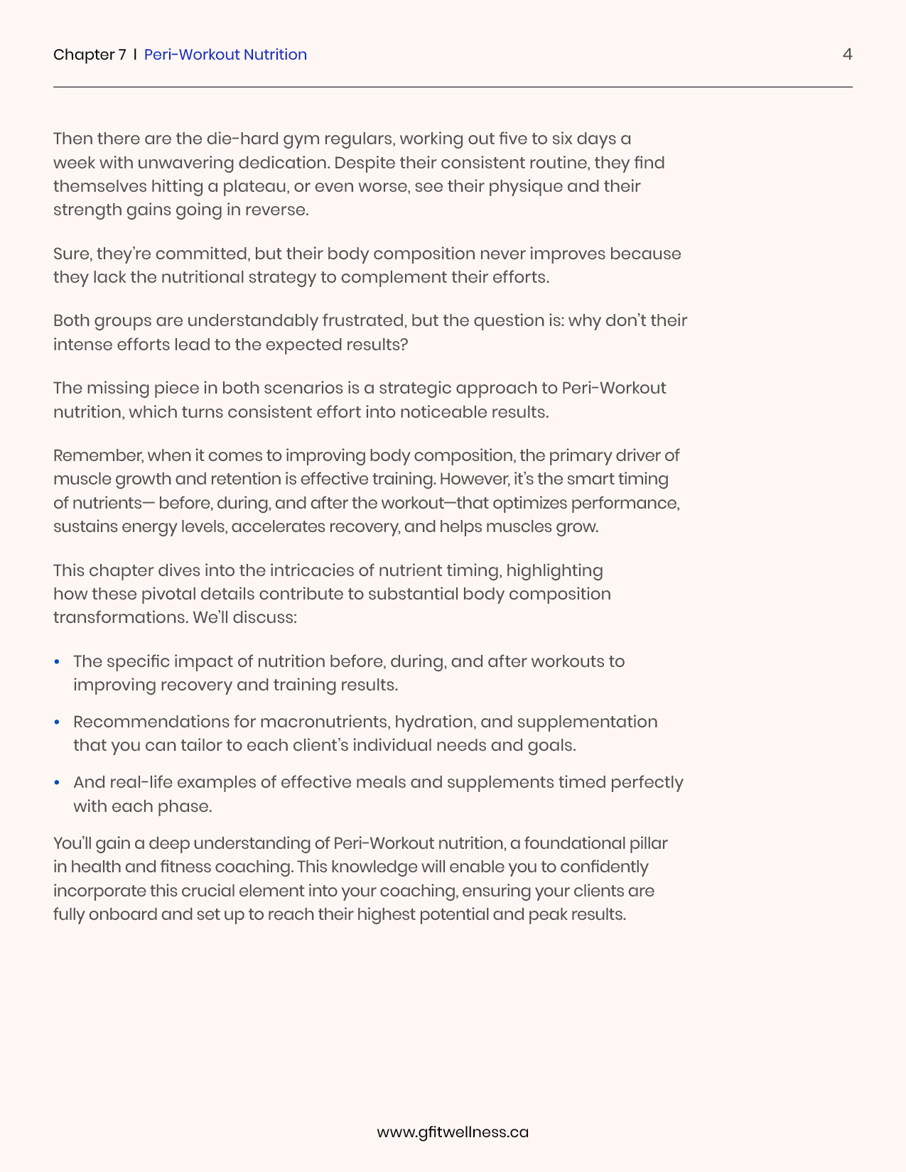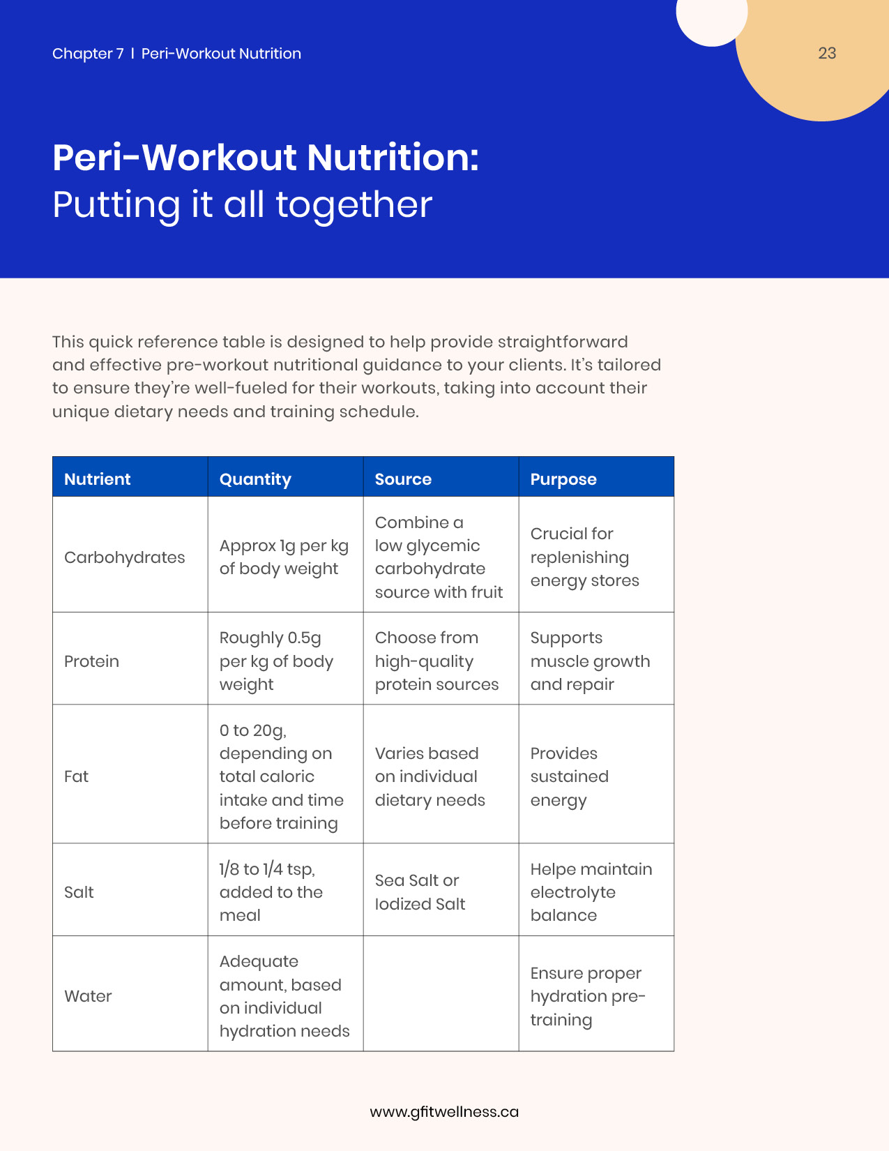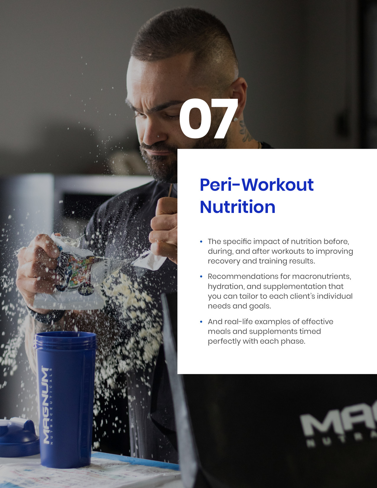 Learn the specific impact of nutrition before, during, and after workouts, recommendations for macronutrients, hydration, and supplementation, and real-life examples of effective meals and supplements timed perfectly with each phase.