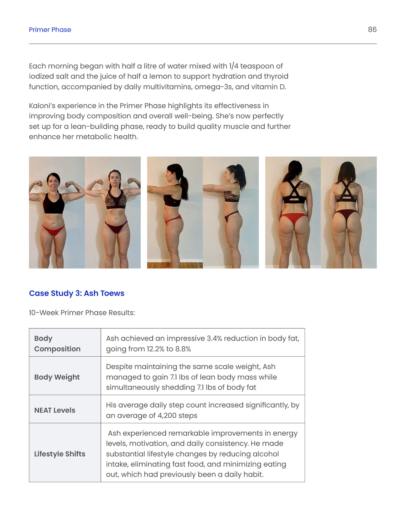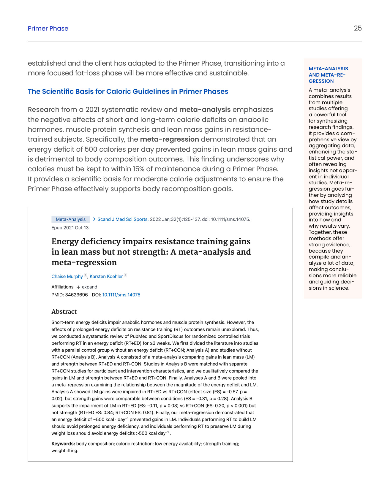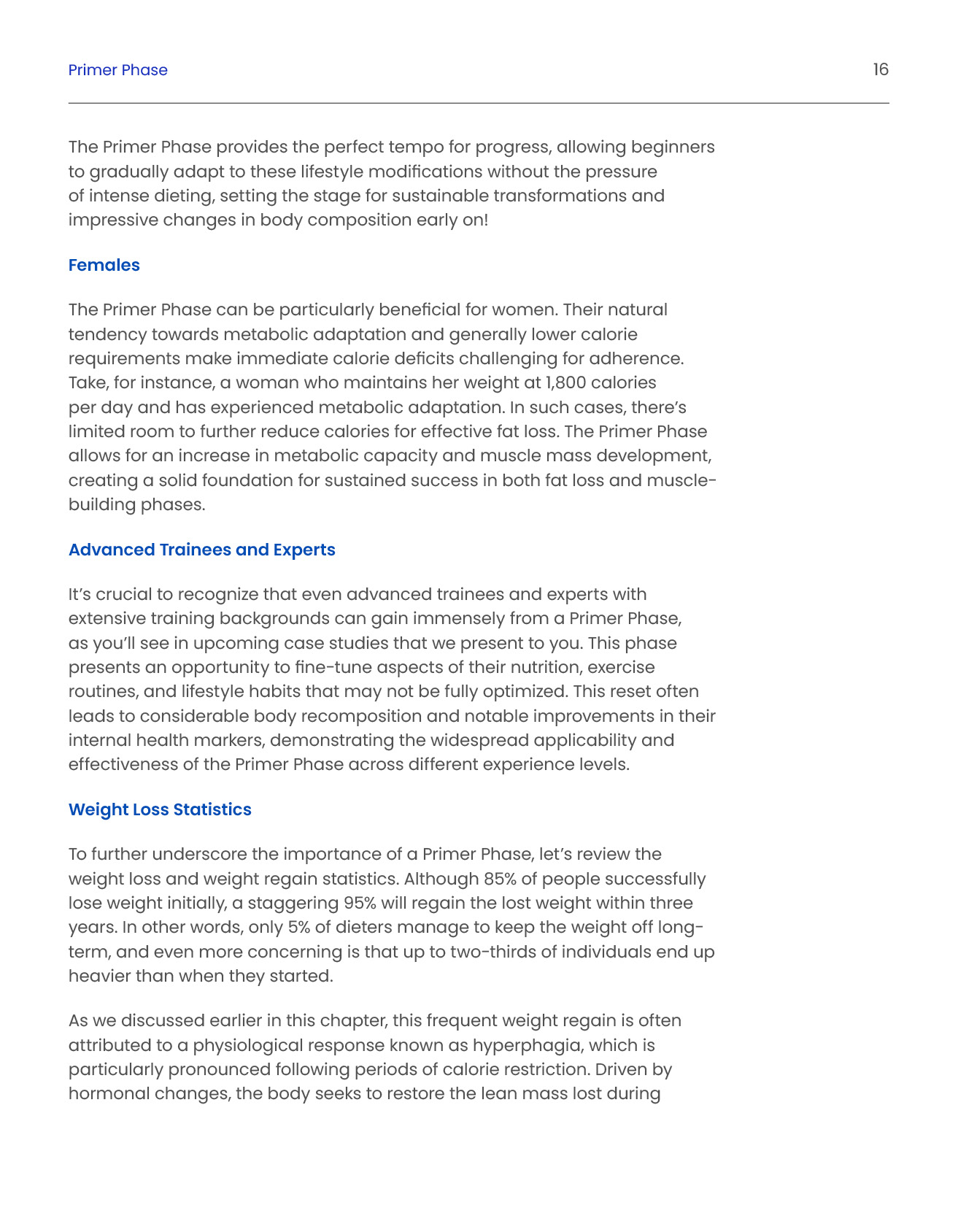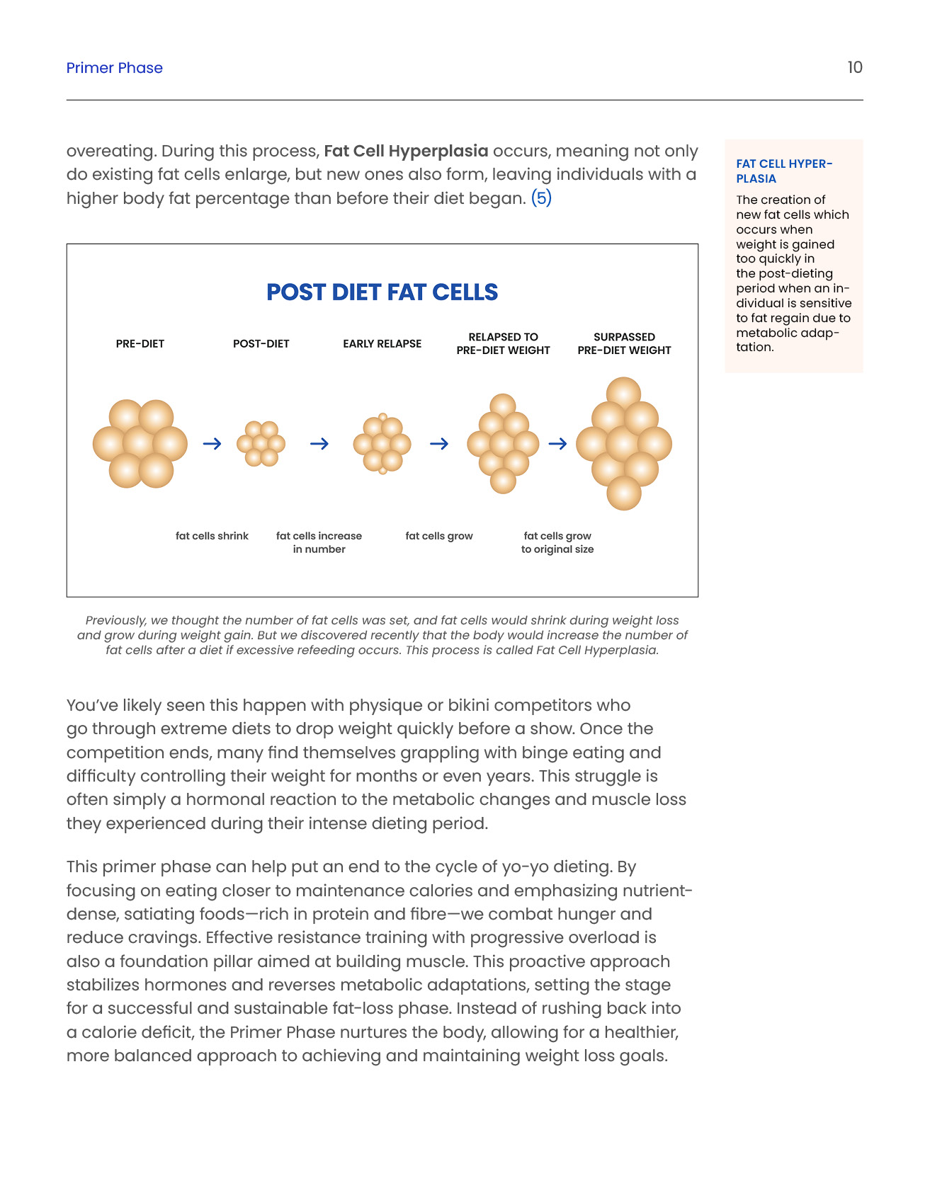 The Primer Phase is a crucial initial step in a periodized nutrition and training program. It aims to prepare clients mentally and physically for more intensive phases of training and dieting, such as fat loss or muscle building. This phase is about building sustainable habits, adjusting diet and caloric intake for optimal body composition, and establishing a routine that clients can adhere to over the long term.