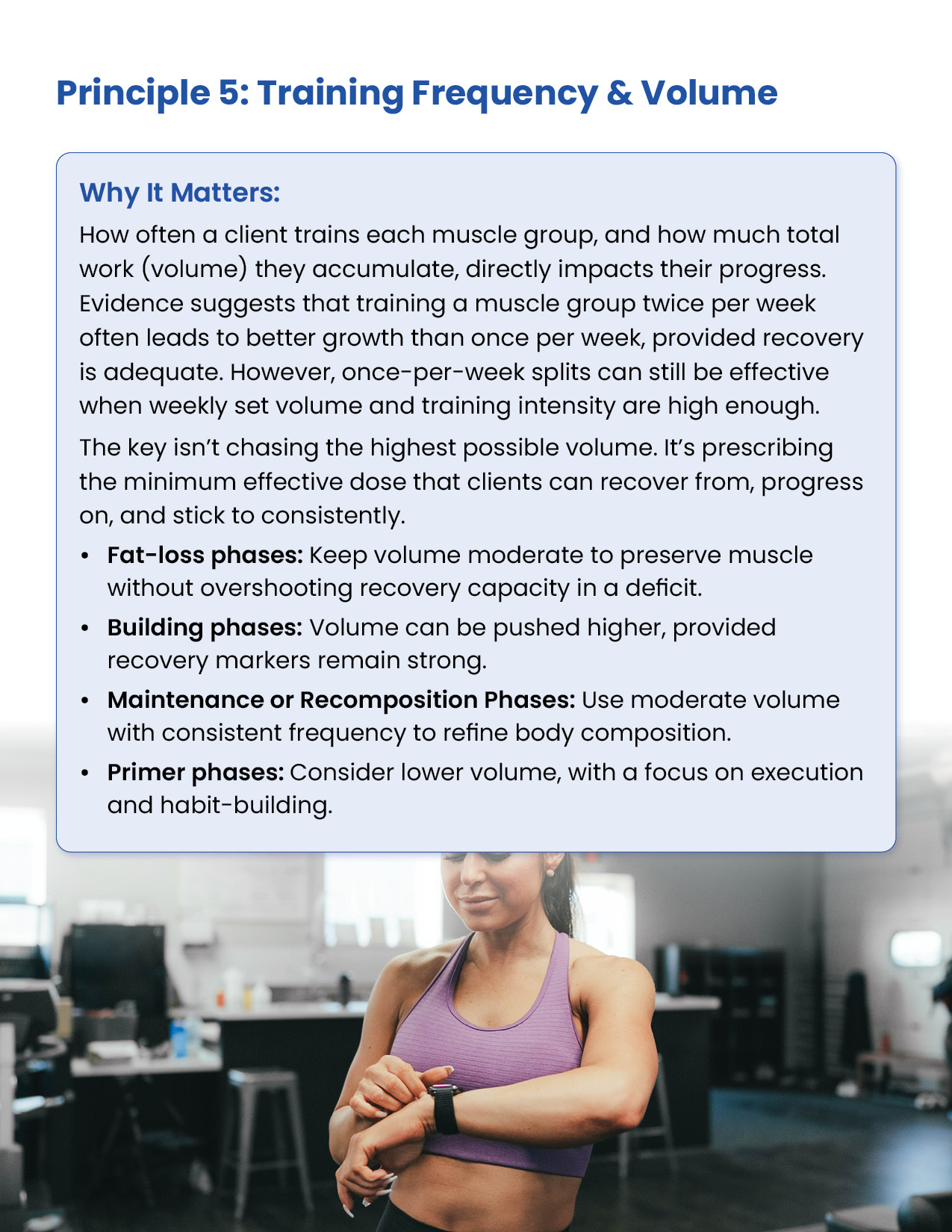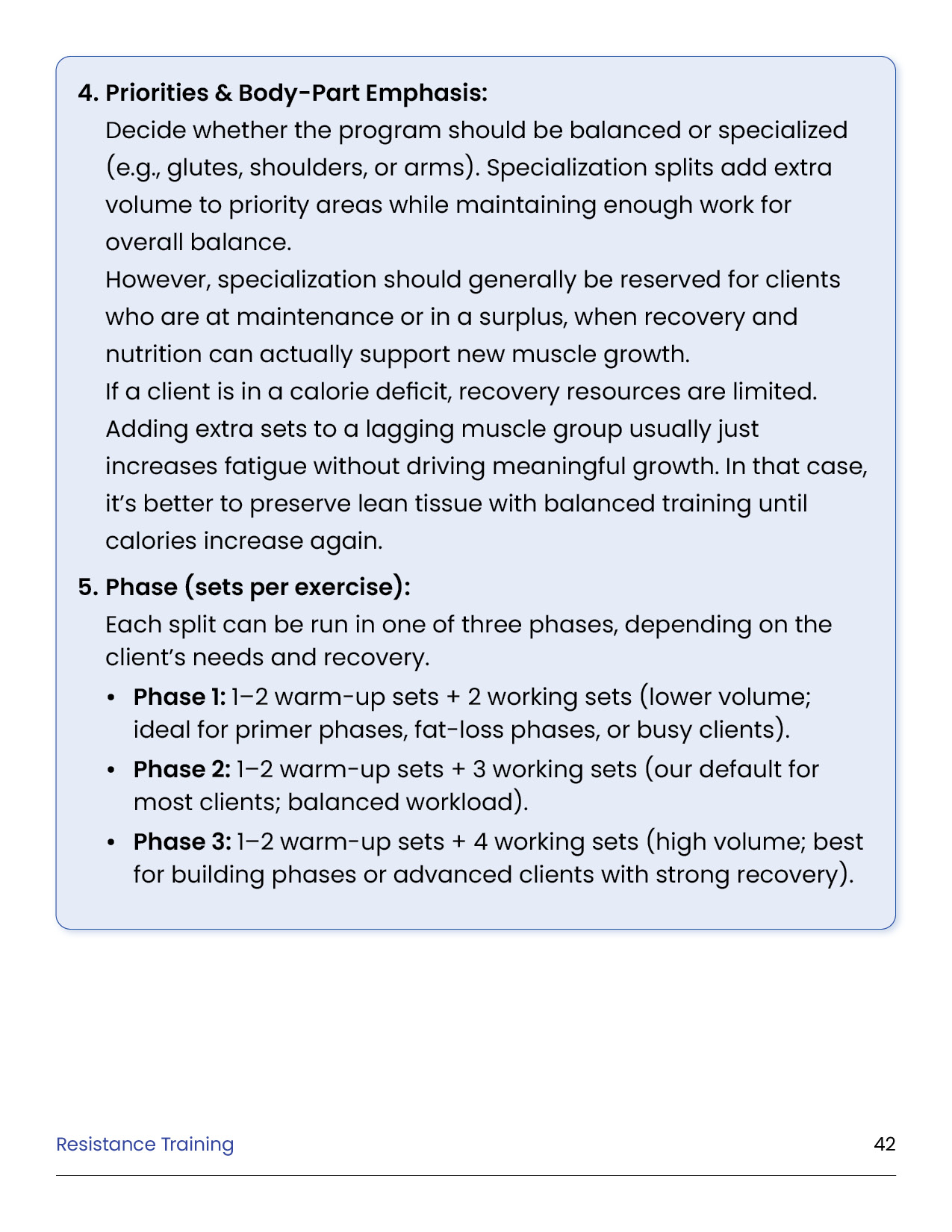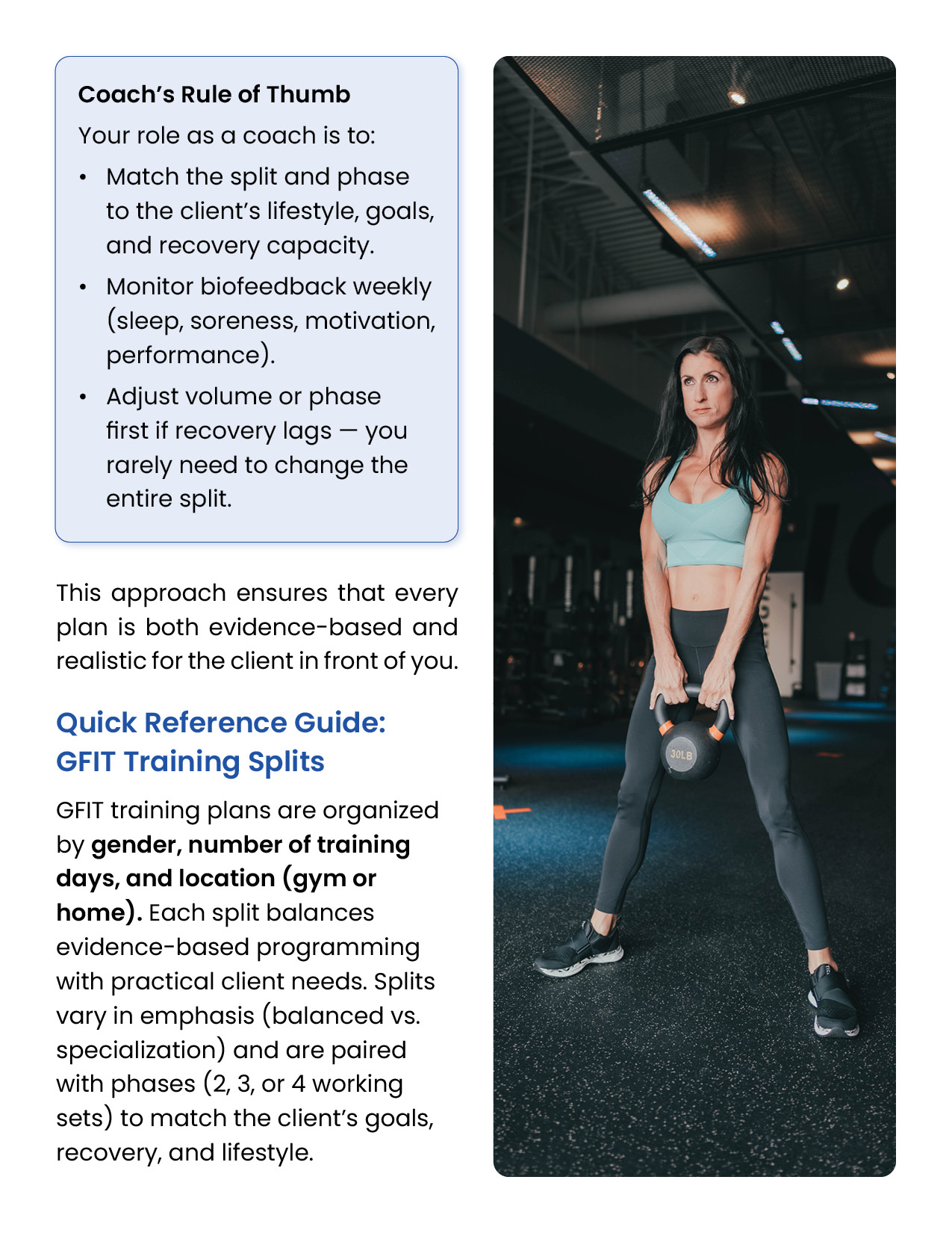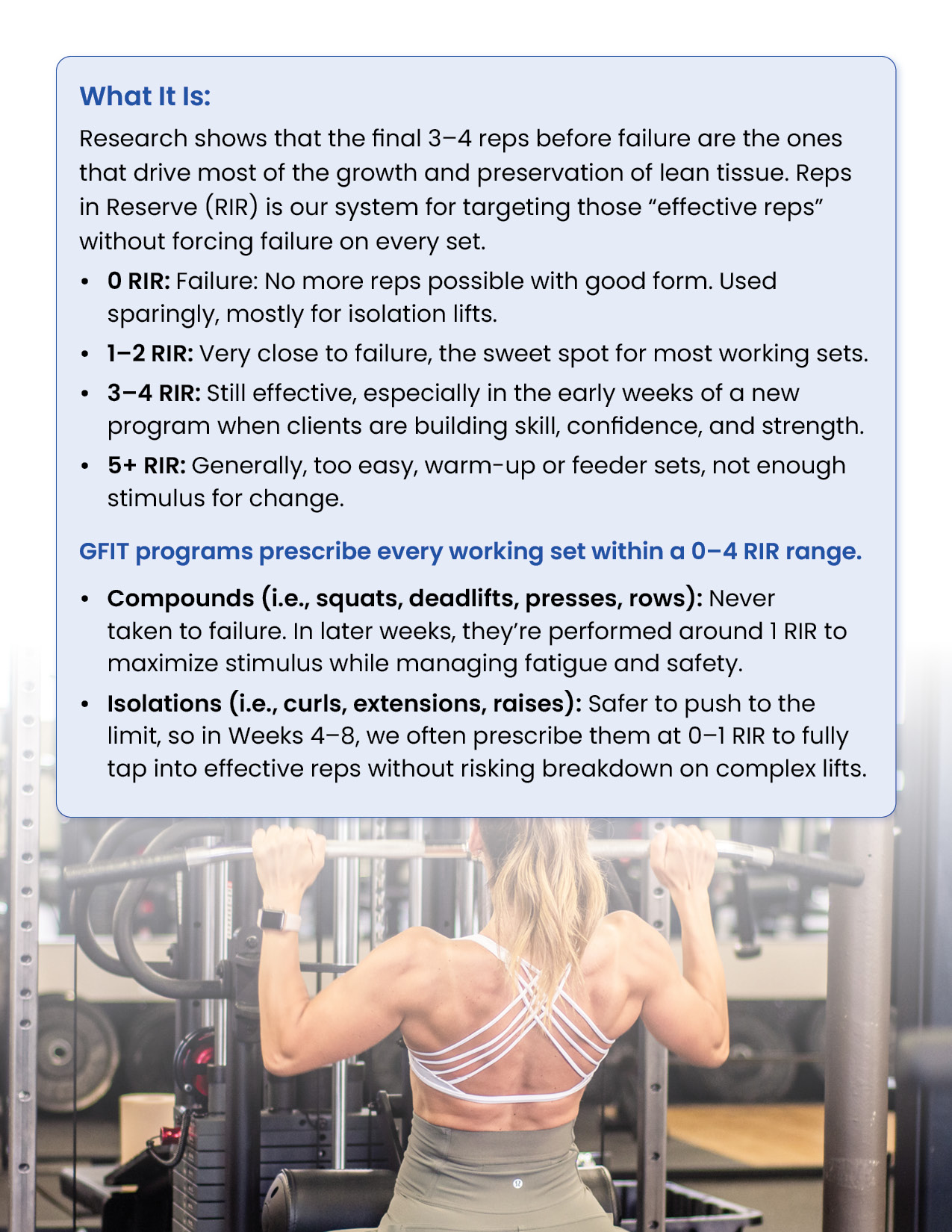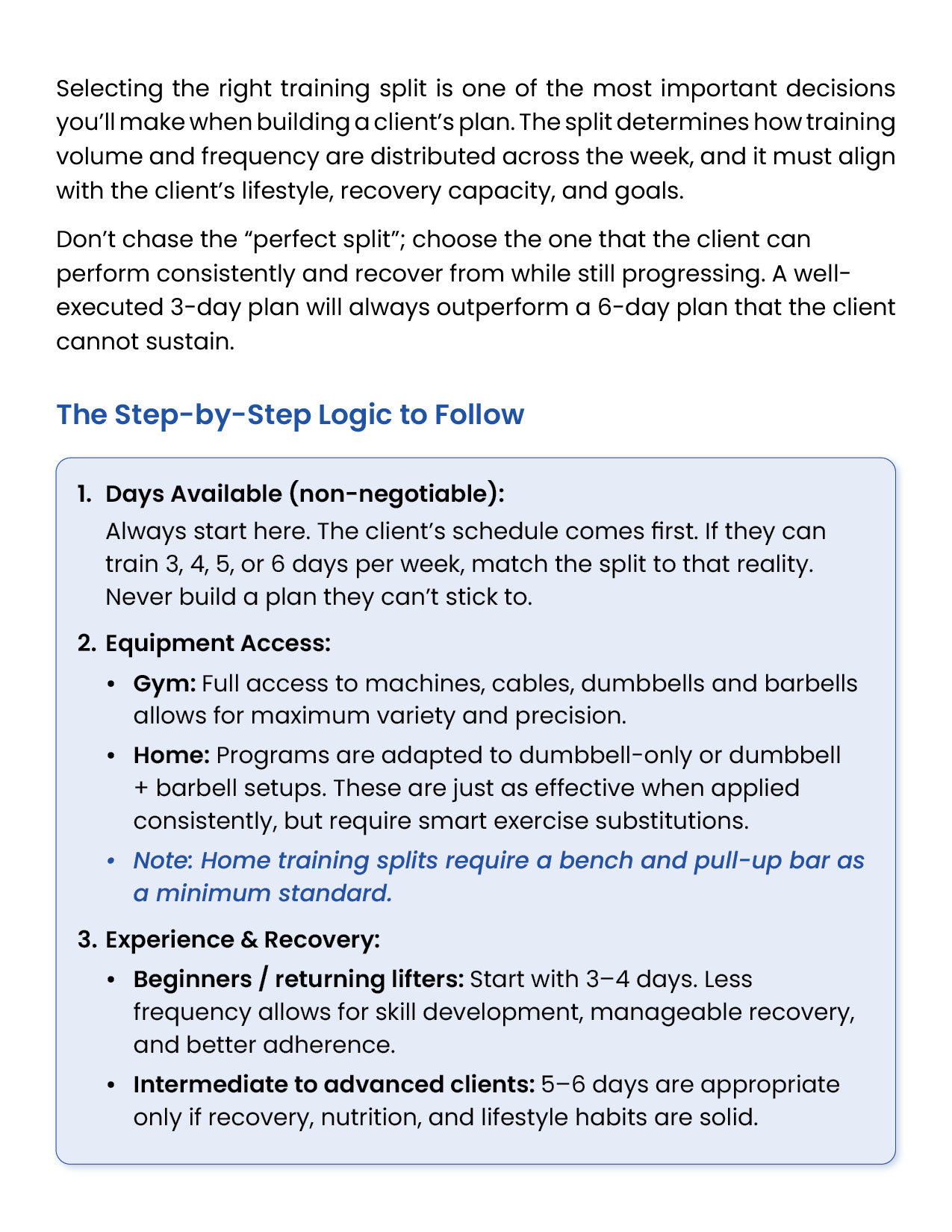 Resistance training is the foundation of every successful body transformation. It preserves muscle in a deficit, builds strength and definition, improves metabolism and health, and creates the physique clients truly want. This module equips you with the principles, standards, and tools to design evidence-based training plans in the GFIT Workout Generator — ensuring safe, sustainable progress for every client.