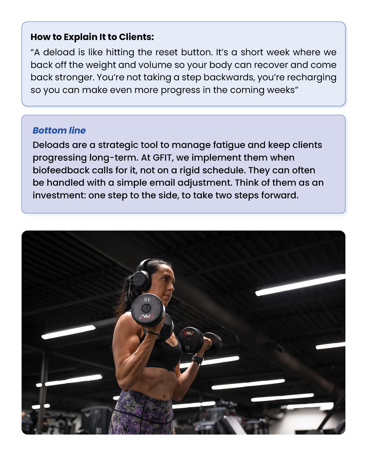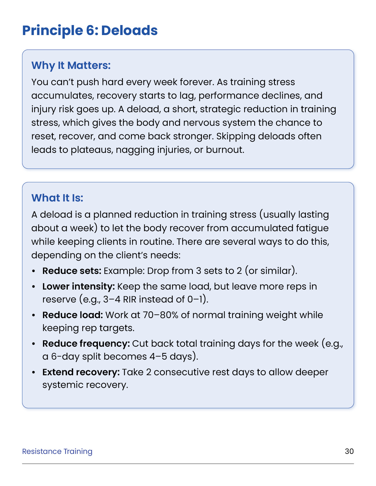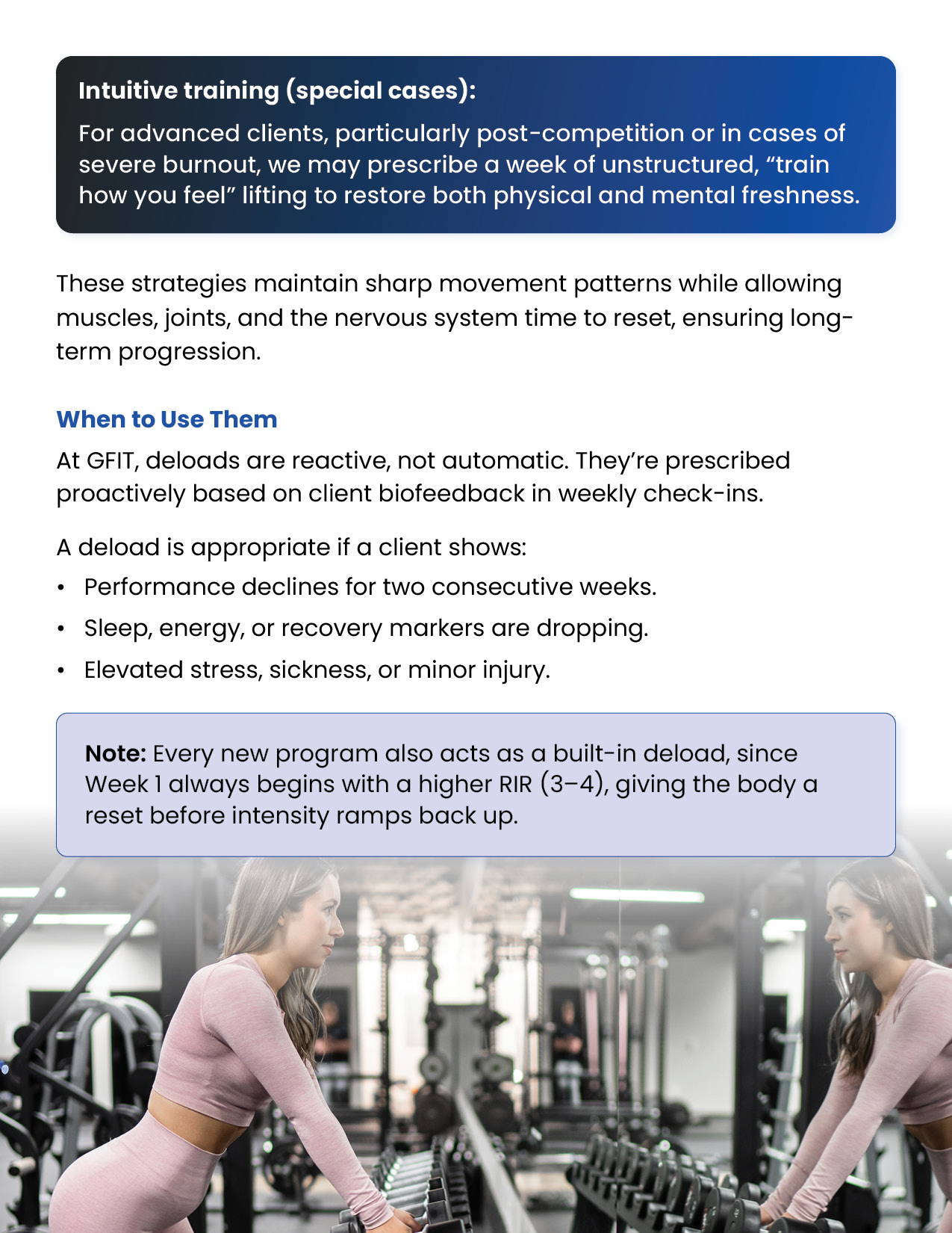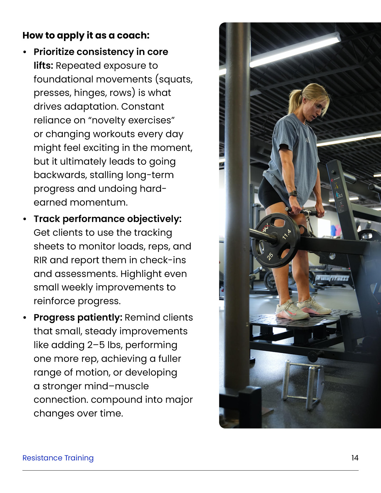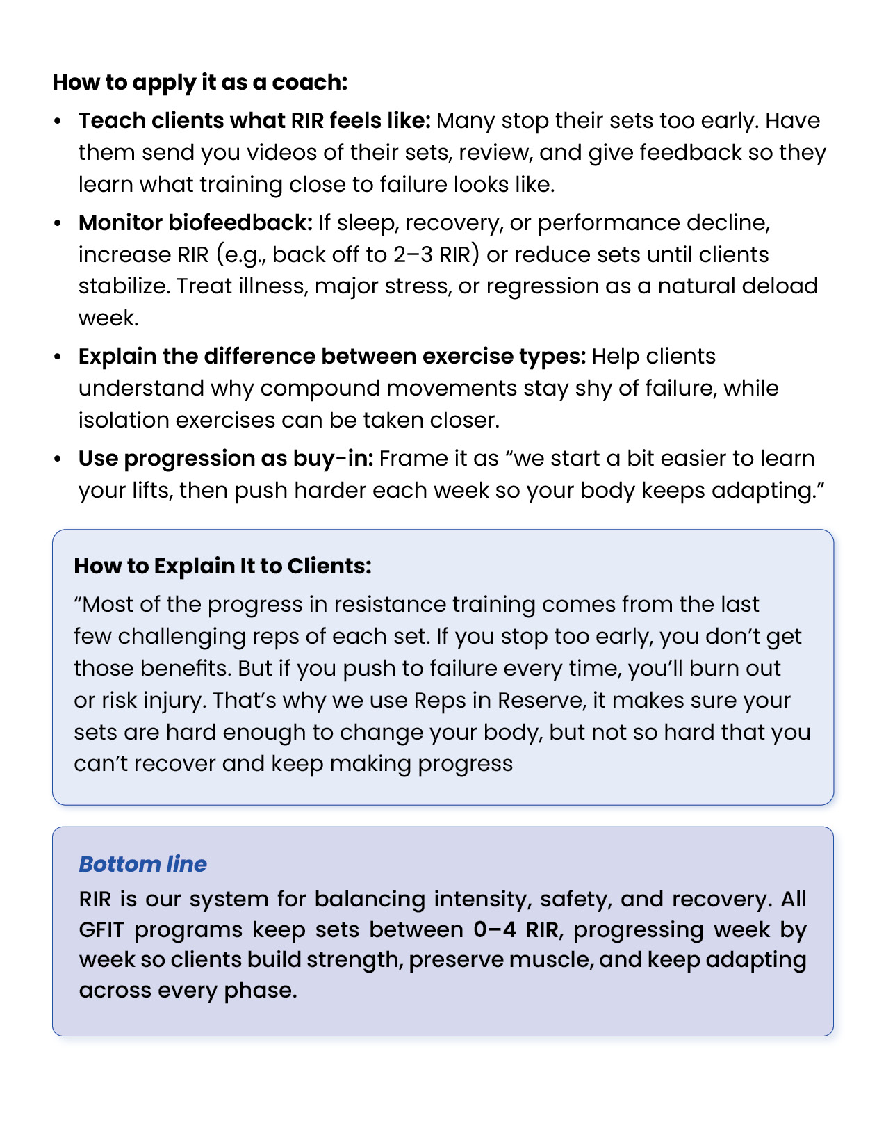 Resistance training is the foundation of every successful body transformation. It preserves muscle in a deficit, builds strength and definition, improves metabolism and health, and creates the physique clients truly want. This module equips you with the principles, standards, and tools to design evidence-based training plans in the GFIT Workout Generator — ensuring safe, sustainable progress for every client.